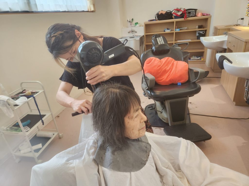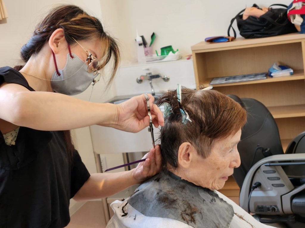 グランビレッジ倉橋の理美容✨ 2024年6月26日 最終更新日時 : 2024年6月26日 kurahasi 当施設では、理容室が設けられております。そこでは当職員の理美容員が入居者様の散髪や毛染め、パーマを行っています。 桜井市も梅雨入りし、ジメジメとした暑い日が続いておりますが、今日はお待ちかねの散髪の日です。 入居様の本音はいくつになっても美しく、かっこよくありたいようです。 入居者様の本音は いくつになっても美しく、かっこよくありたいようです。 皆様大満足のご様子でした。これで梅雨のジメジメが少しでも軽減されればいいですね😊